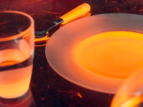 Via the physical principle, total reflection, light is transmitted through the glass top and remain invisible for the human eye. Placing an object, capable to transmit light, on the glass surface, by neglecting the meeting surfaces through complete flush contact, light emits from the glass surface and enlights the object.