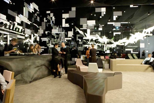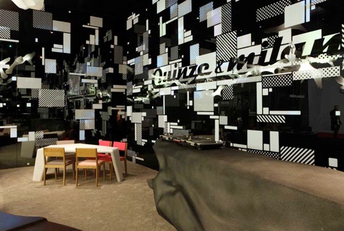 In 2006, I was given the opportunity to organize the exhibition of Quinze & Milan at the Salone del Mobile in Milan. A major element of this tremendous setting were the large prints by Glossy.tv, covering more than 200 sqm of black mirrors.