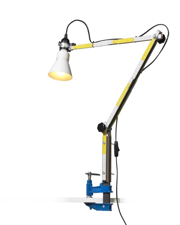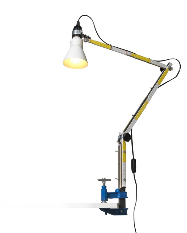 Tools Clamp Light is a ready-made lighting objects, an hybrid between a lamp and a ruler. The design features an arm made from an extendible wooden ruler making it adjustable, in combination with already existing lighting components. This incomparable mix of materials into a narrative design is an invocation to poetry. The poetry of making, of collage, of prototyping and the poetry of sustainability.