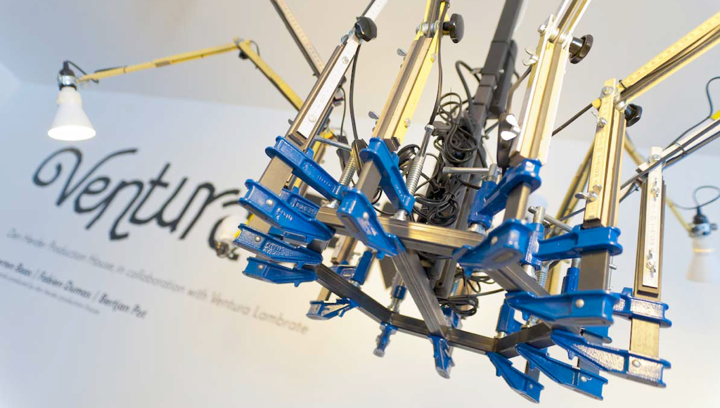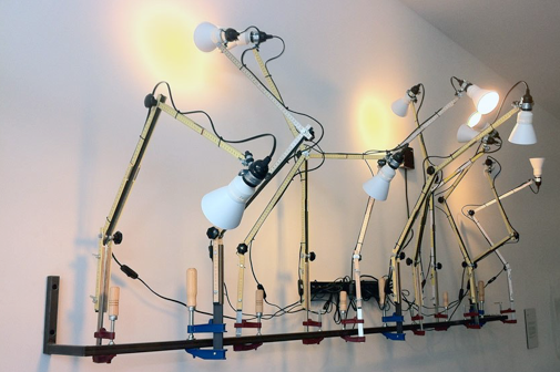 The Tools Chandelier “Dear Ron”, where the clamps are mounted on a frame. The frame is mounted to the ceiling and can be adjusted in height. Besides these models we can make Tools Custom Lights where the lights are customized to specification.